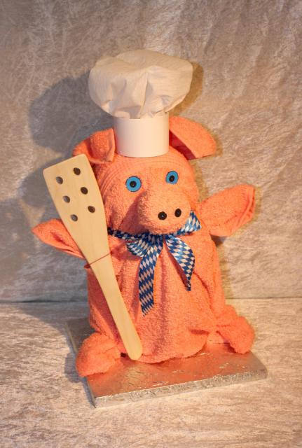 Das große Schwein besteht aus einem Handtuch 50x100cm (100% Baumwolle).